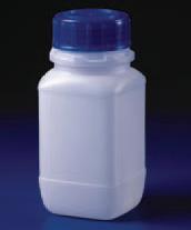 Square shaped, leak proof design and chemical resistant. Tamper-proof tear-lock closure.These bottles with heavy-threaded necks make good use of limited shelf space and are ideal for storing or shipping samples. They are molded of high-density polyethylene with deep-shelled, blue polypropylene closures. 6 per bag.