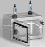 This mini 0.35 cu. ft. volume desiccator cabinet reduces the amount of gas required to maintain a gas purged environment. Cabinet is molded of clear polystyrene and door is molded of clear co-polyester for easy viewing of contents.